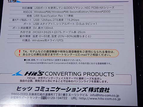 今回購入したのは,ヒッツコミュニケーションズ のUSB to Serialというシリアル変換機です.