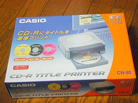 CASIO が EZ-USB というシリーズで,1万円前後の価格帯でラベルプリンタ やテンキー電卓,デジタルカメラ等を販売しています.TOY カメラという ジャンルに先鞭を付けた格好になり,LV-10が一時爆発的に 売れたことで記憶している人は多いと思います. そして今回本ページで解説する『ディスクタイトルプリンタ CW-50』も, このシリーズの1つです.現在は PC 無しでタイトルを印刷できるCW-70の他, 上位機種に当たるCW-100も販売されています. CW-50のコンセプトは至って明確で,前述したような『主にテキスト情報を 綺麗にかつ手軽にラベル面に印刷する』というものです.ただ,派手 さという面ではあまりパッとしないせいか,爆発的なヒット作になったと いう話は聞きません.とは言え,実用本位かつ懐にもやさしく導入できる 周辺機器としては,お勧めできる一品です. |