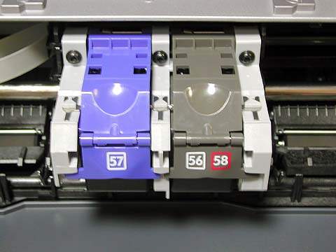 持っています. なお,ここでインクジェット方式に関して詳しく解説したのには理由が あります.ピエゾ方式とサーマルインクジェット/バブルジェット方式の 2種類の方式のメリット・デメリットの部分で,『ヘッド構造』の話を しました.前者方式はヘッドが構造が複雑で高価であり,後者方式は単純で あるため安価であるという部分です.『構造はユーザーには関係ないヨ』や, 『でもプリンタ本体はどのメーカーも同じくらいの値段だよね』と,いう 突っ込みがありそうですが,実はこの部分に,非常に重要な事柄が隠れています. 具体的に書きますと,前者方式は EPSON が採用しており,高価になるヘッド 部分は本体内蔵.インクタンクのみ交換式です.後者方式は HP, Canon が採用 しており,機種にもよりますが,インクカートリッジはインクタンクとヘッドの 一体型になっています.そのため,後者方式を採用しているインクカートリッジ は前者方式のものに比較し,高価になります. 一見前者方式の方がランニングコストが安くなりそうで良く見えますが, ここに落とし穴があります.ピエゾ方式の場合はどうしてもインク詰まりを 防ぐために,定期的にメンテナンスをしてやらなければなりません.具体的 には,ノズルの目詰まり等を防ぐためにインクを定期的に噴射し,ノズルの部分に 古いインクが乾いて固まらないようにしなければならないということです. また,比較的頻繁にプリンタを使用する場合は良いのですが,長期間 使用せずに久しぶりに使用しようとしたたら,インクが乾いて目詰まり を起こしていたなんてこともあり得ます.このような場合,サーマル インクジェット方式の場合はインクカートリッジの交換で新しいヘッド になりますが,ピエゾ方式でかつ,ヘッドが本体内蔵の場合,修理に 出さなければなりません.目詰まりと言っても画質が若干悪くなるレベル のものから,見るも無惨に印刷されるレベルまで様々ですが,何年か前に 聞いた話では,この修理には1万円近くかかるとか.